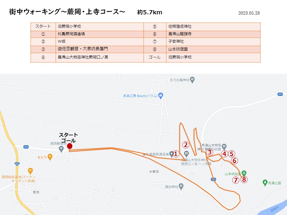 5月28日(日)、街中ウォーキング~蕨岡・上寺コース~を行いました。
